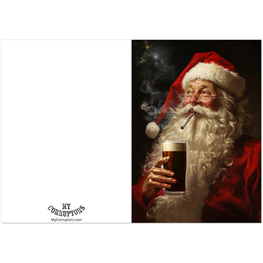 A puff and a pint with Father Christmas - Pack of 10 A6 cards with envelopes